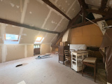A l'étage: un palier desservant une chambre et une salle d'eau avec un toilette. Vous accédez au grenier par un second escalier, possibilité de l'amménager en chambre.